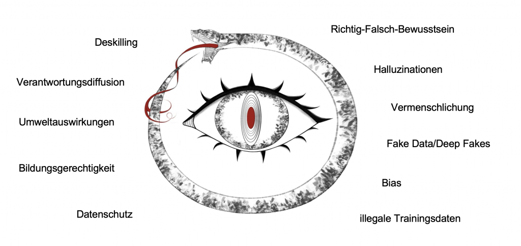 Verantwortungs-diffusion | Simon, Judith; Spiecker gen. Döhmann, Indra & von Luxburg, Ulrike (2024): Generative KI – jenseits von Euphorie und einfachen Lösungen, URL: https://www.inf.uni-hamburg.de/en/inst/ab/eit/about/newsfeed/2024/20241017-leopoldina/simon-spiecker-luxburg-2024-generative-ki.pdf (letzter Zugriff 07.05.2024). |