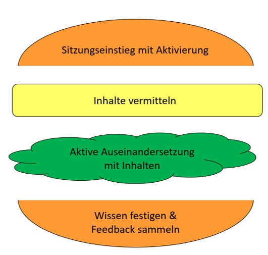 Das auf Wahl (2013) zurückgehende Sandwich-Modell bildet typische Phasen einer Lehrveranstaltung ab.