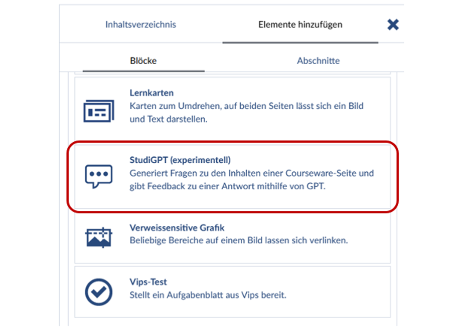 - Es werden Artikel veröffentlicht und spezielle Seiten zu KI in der Lehre angelegt. Zum Auftakt haben wir eine Empfehlung für diejenigen veröffentlicht, die bislang noch wenig Gelegenheit hatten, sich mit der KI-Thematik zu befassen. Frisch erschienen ist außerdem ein Beitrag zu StudiGPT – einem innovativen, KI-basierten Stud.IP-Plugin, das am virtUOS entwickelt wurde.